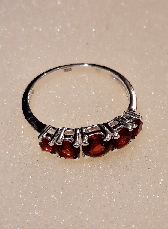 Bague en argent sterling 9.25 avec des pierres de grenat.