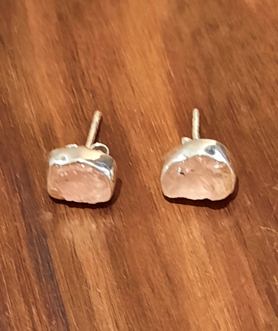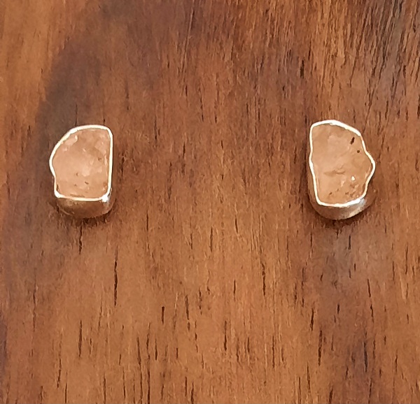 Boucle d’oreilles en argent sterling 9.25 avec des pierres de quartz rose brutes..