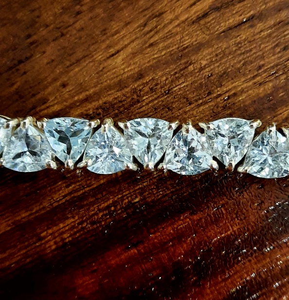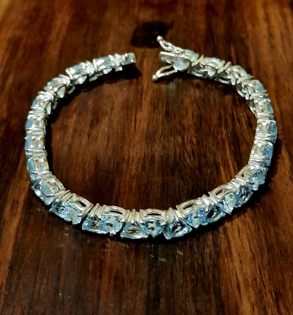 Bracelet en argent sterling 9.25 avec des pierres de topaze bleue facettées.