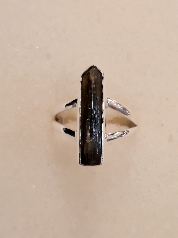 Bague en argent sterling 9.25 avec une pierre de tourmaline verte.