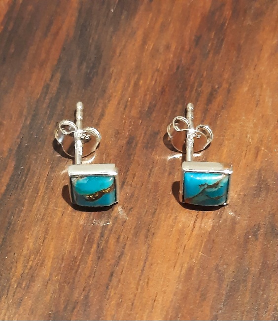 Boucle d’oreilles en argent sterling 9.25 avec des pierres de turquoise cuivrées.